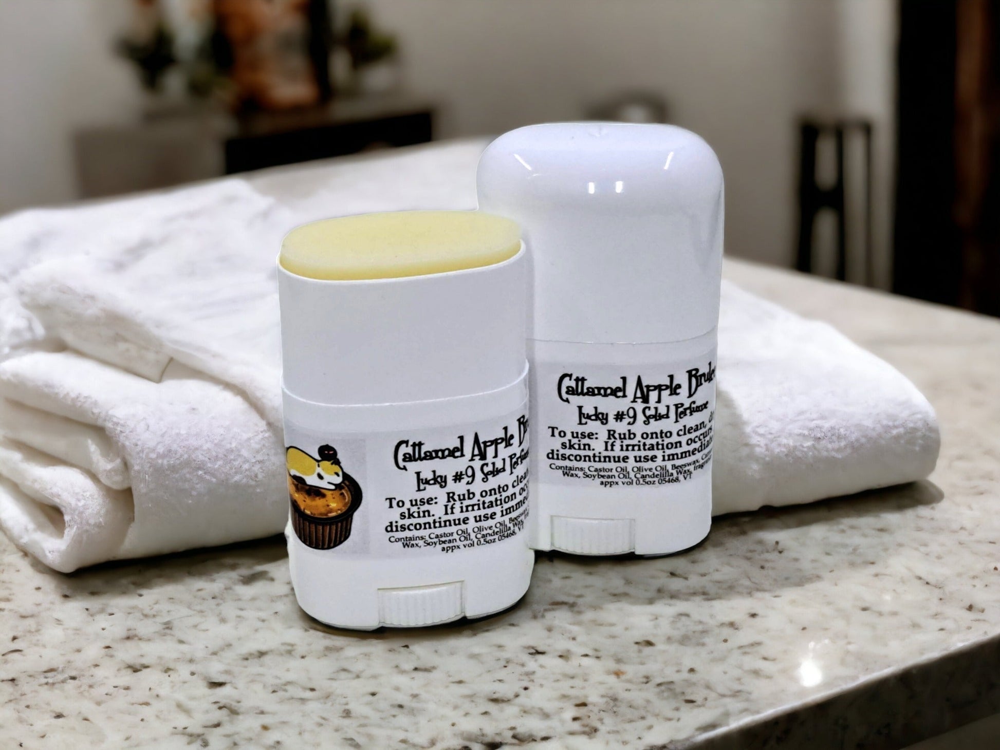 Our exciting and expansive fragrance blends in a nourishing, skin-loving balm! One (1) Solid Scent in a .5oz twist up tube. Disclaimer: As with all scented products do a patch test to ensure you are not sensitive to any components and if irritation occurs, discontinue use! May soften or melt in high temps. Ingredients: Castor Oil, Olive Oil, Beeswax, Carnauba Wax, Soybean Oil, Candelilla Wax